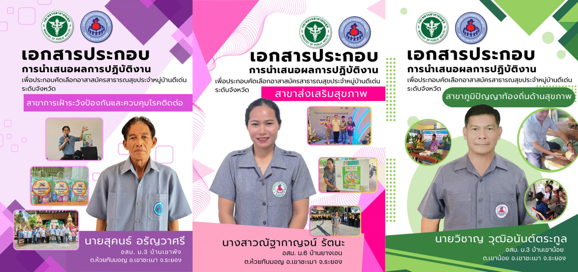 ขอแสดงความยินดีกับ อสม. อำเภอเขาชะเมาที่ได้รับการคัดเลือกเป็นตัวแทนของจังหวัดระยอง เข้าร่วมการประกวด อสม.ดีเด่น ระดับเขตต่อไป