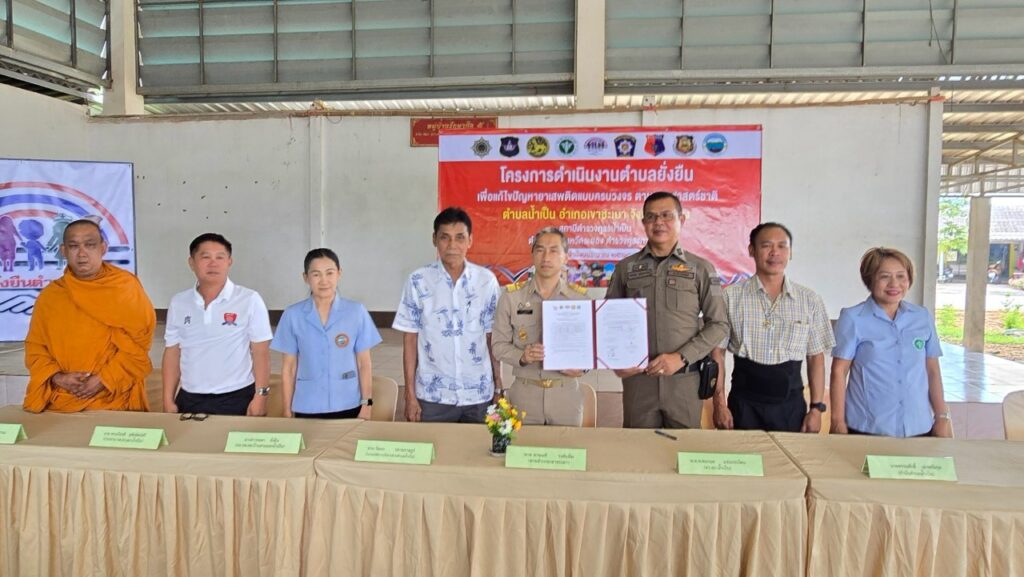 สสอ.เขาชะเมาเข้าร่วมพิธีเปิดโครงการและพิธีลงนามบันทึกข้อตกลงความร่วมมือ (MOU) โครงการตำบลยั่งยืน เพื่อแก้ไขปัญหายาเสพติดแบบครบวงจร ตามยุทธศาสตร์ชาติ ตำบลนำเป็นและตำบลห้วยทับมอญ
